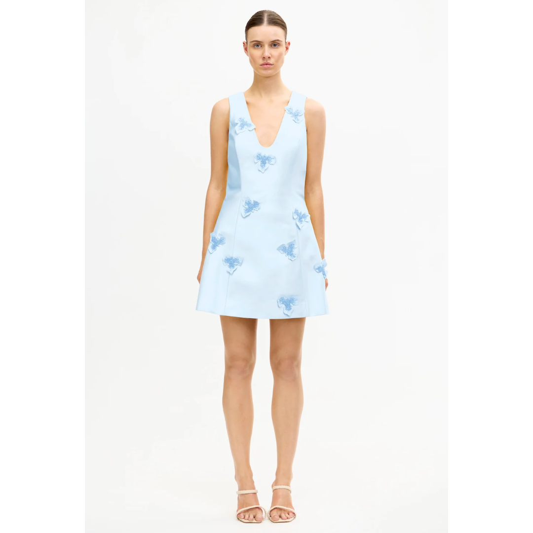 The Blairhall Mini Dress in Powder Blue captures Acler's architectural approach to event dressing. Sculpted in a luminous woven fabrication with a duchess satin effect, this mini silhouette is elevated by hand-applied beaded appliqués for refined texture and artistry. Fully lined for structure and comfort, Blairhall is designed to make a polished statement at any occasion.