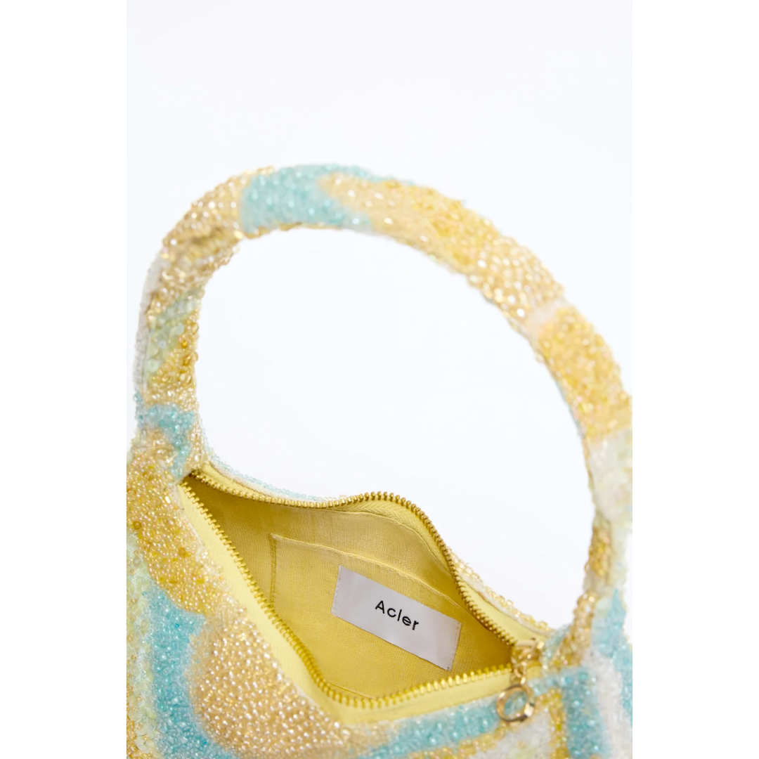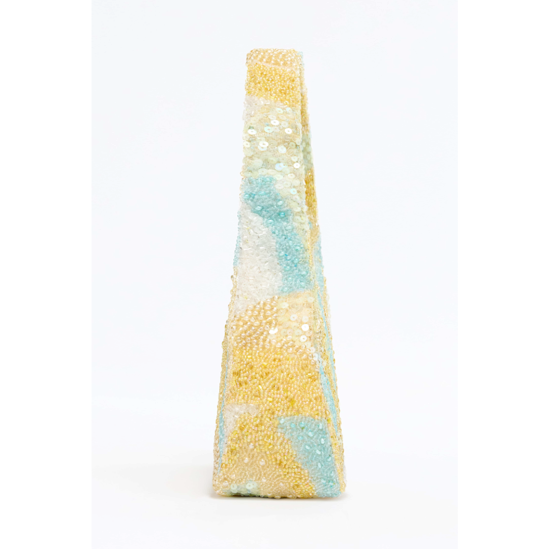 • The Laneshire Beaded Bag in Lemon Mist is a detailed work of art, meticulously hand-beaded by artisans with over 35 years of expertise. Each bead is individually applied, following the contours of our unique Rose Drift print, with alternating sizes adding depth and texture to its surface. The palette of soft lemon, icy blue, and shimmering pearl tones evokes the fluidity of sunlit landscapes, creating a radiant, multi-dimensional finish.