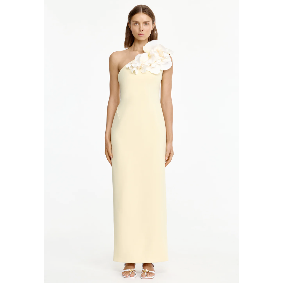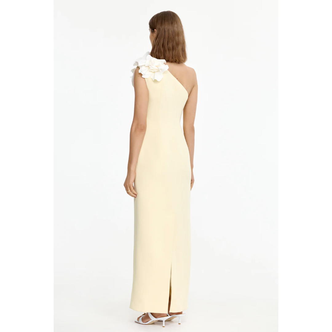 The Zofia Maxi Dress in Lemon Sorbet embodies refined artistry, defined by its sculptural maxi silhouette and intricate printed 3D flower detailing. Rendered in a bonded crepe fabrication, this one-shoulder design is designed to transcend occasion wear, highlighting romantic, hand-finished touches for modern event dressing.