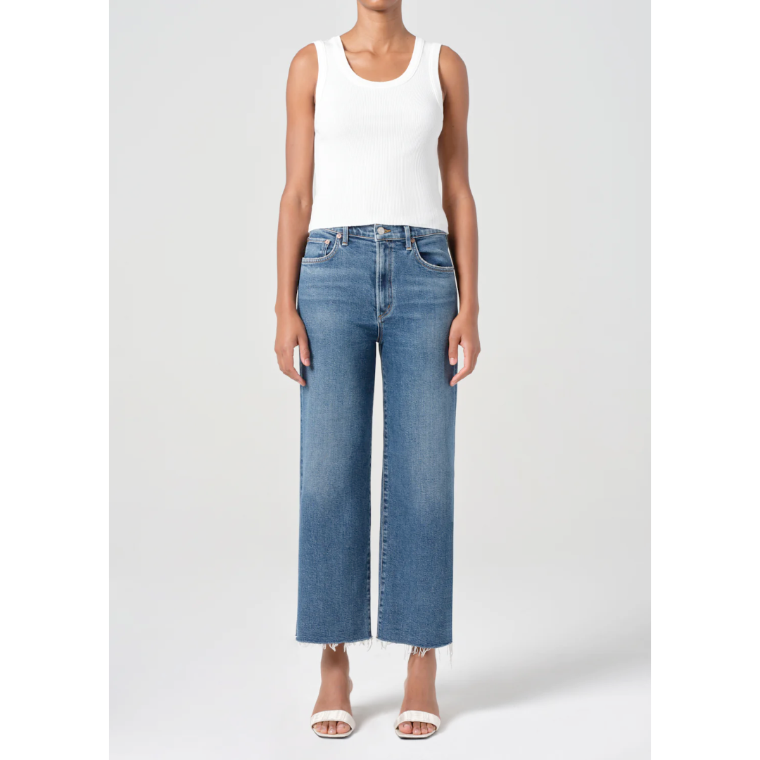 The Harper is a relaxed mid-rise with a flattering square top block and a straight yet subtle cropped wide leg.