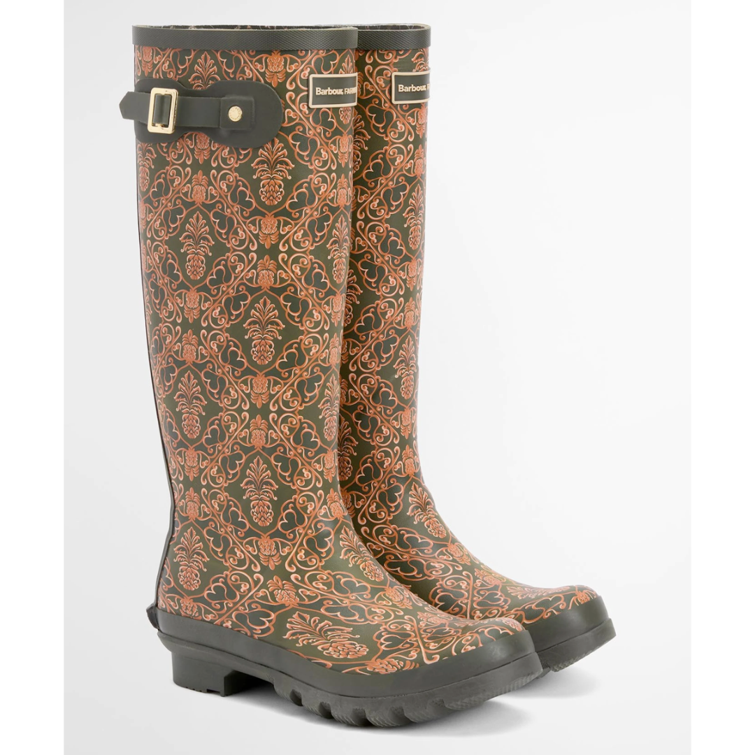 Fusing Barbour's signature countryside spirit and classic outerwear, footwear and accessories with FARM Rio's Brazilian spirit, the Barbour FARM Rio collaboration offer timeless British heritage infused with Brazilian tropical vibrance. Boasting a classic Barbour silhouette, the Barbour FARM Rio Cami Wellingtons make sure you're ready from whatever the great outdoors has in store, in style. An all-over Barbour FARM Rio Pineapple print gives this once simply practical style a vibrant upgrade. All of a sudden the wet-weather doesn't seem all that dull.