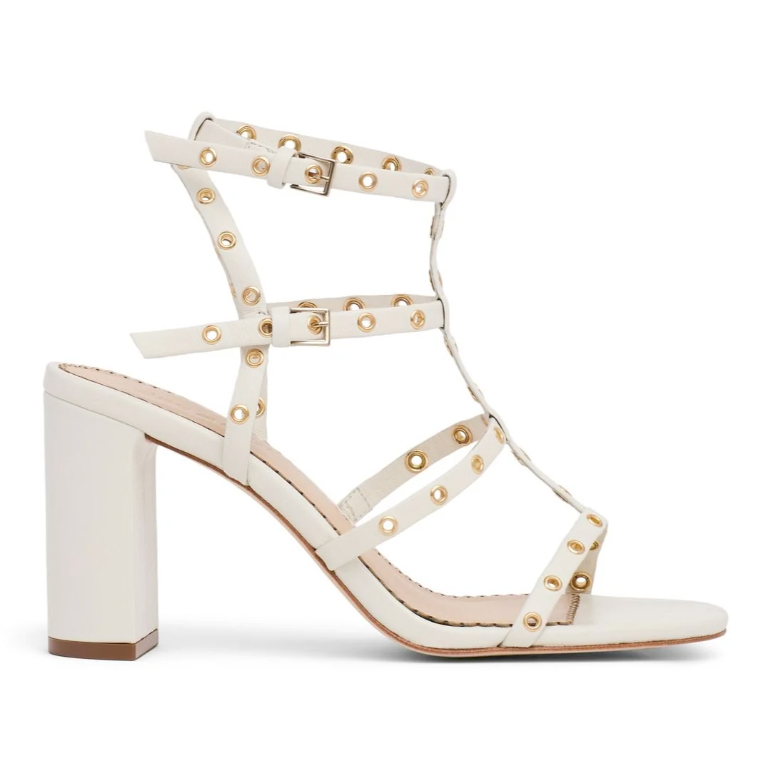 The Maisie Strappy Grommet Block Heel is a modern shoe that balances edge with comfort. Its T-Strap design and multi-strap construction are punctuated with metallic grommets for visual impact, while the sturdy block heel keeps you grounded all day. A versatile piece that works equally well with casual or dressed-up looks.