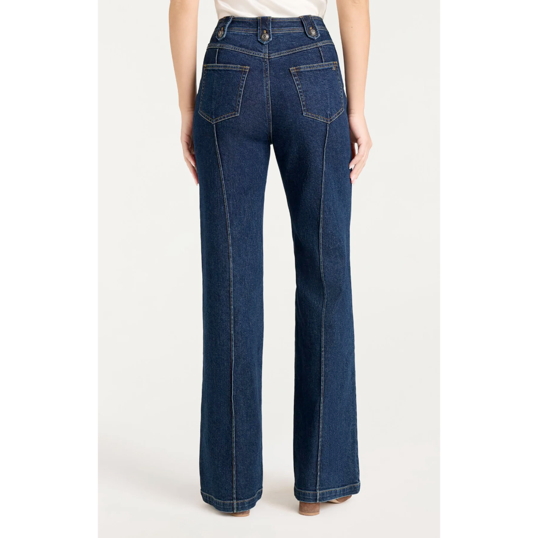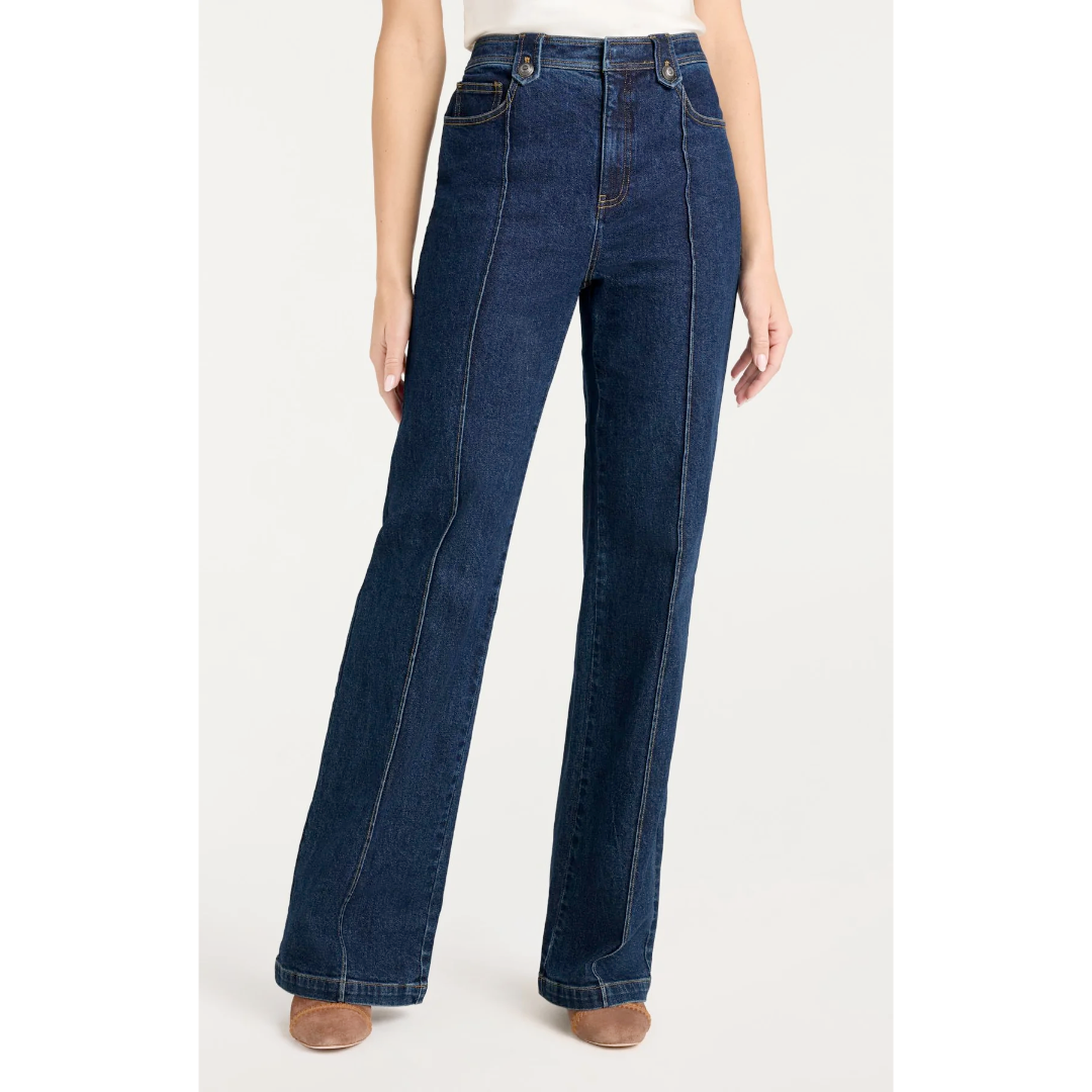 The Niko Pant offers a sophisticated take on the classic denim straight leg. For this pant, it's all in the details: subtle button details decorate the waistband and seams run down the front, enhancing its sleek silhouette. With a rich, dark wash, this is a new timeless essential for your wardrobe.