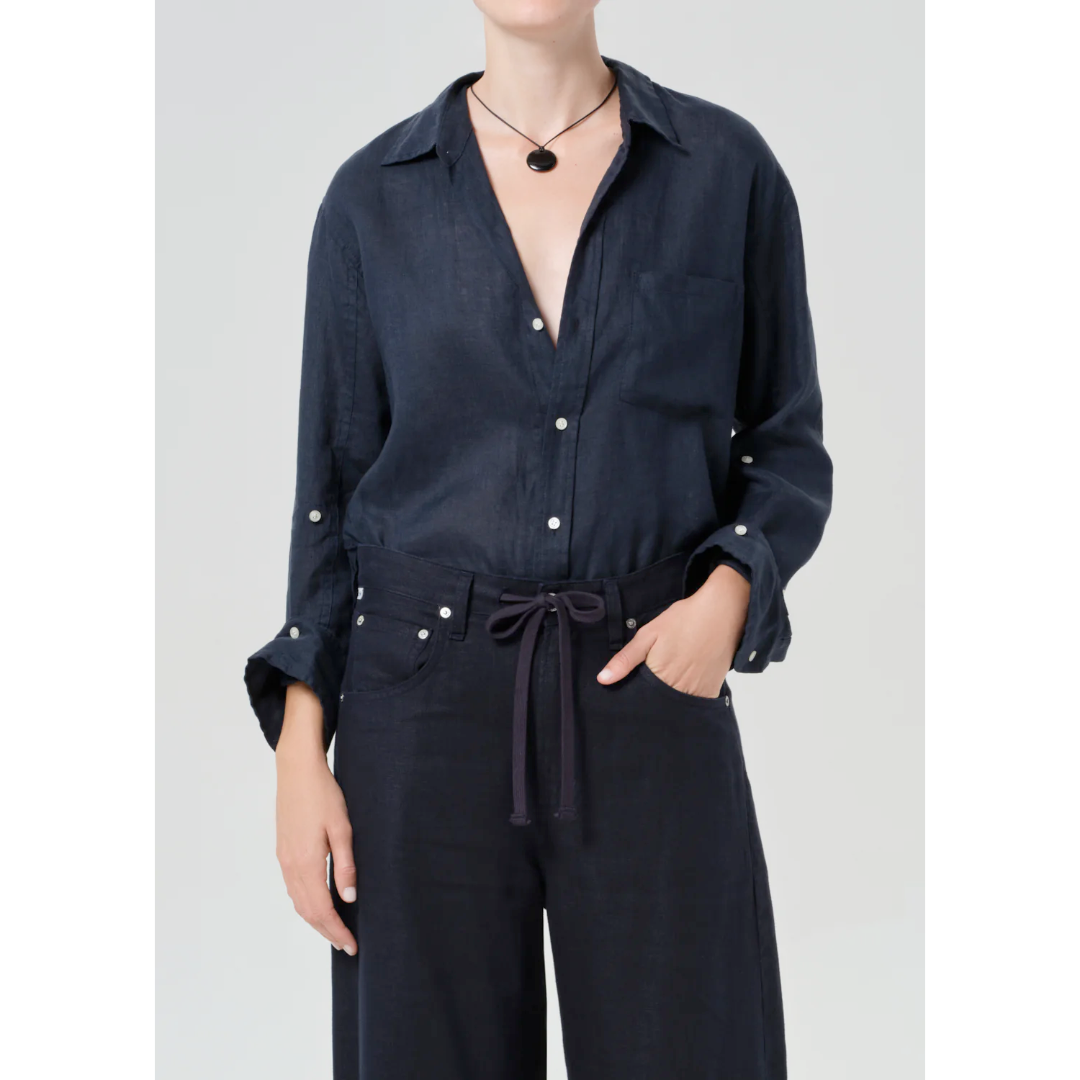 Our best-selling Kayla Shirt just got a long awaited update. This wardrobe must-have features a slightly more fitted silhouette, perfect for day to night. This classic fit still has the soft drop shoulder, the perfect drape throughout the body, offering the perfect dimension to a timeless staple.