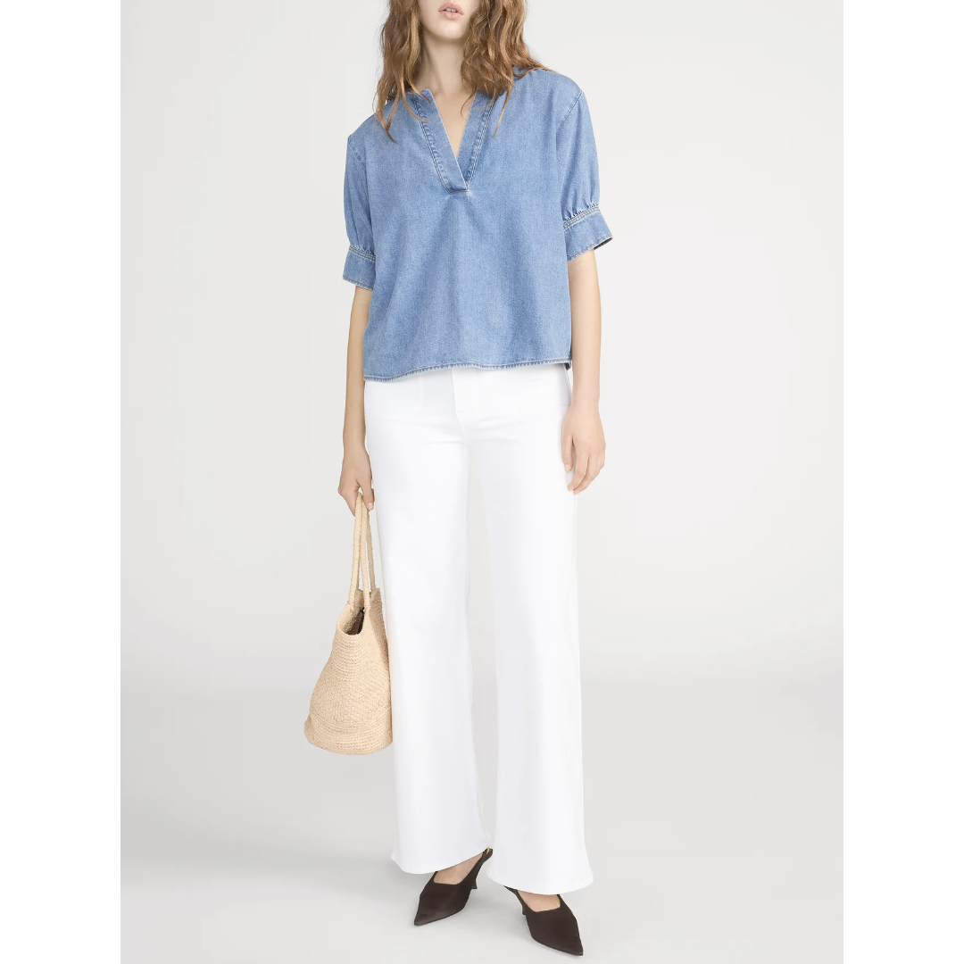 FRAME's best-selling palazzo silhouette, now with chic front pocket details. This pair has the same flattering high rise, fitted hip, and subtle wide-leg flare that hits at the floor. Crafted from a sustainable, ultra stretch cotton blend for soft and comfortable wear.
