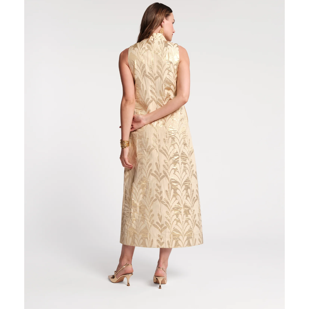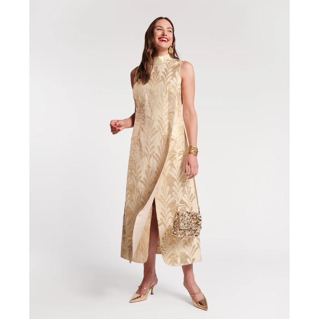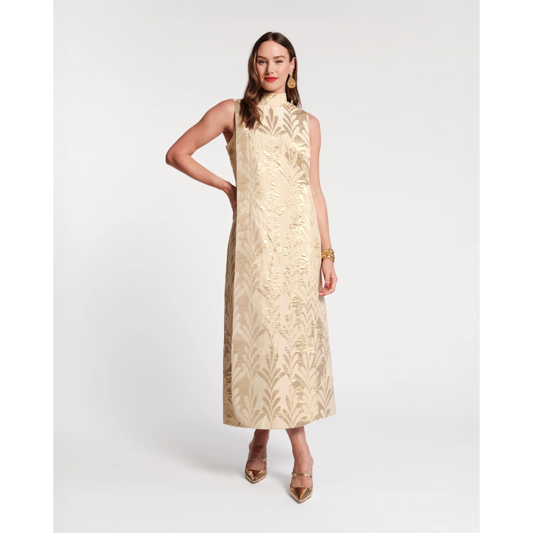Step into the spotlight with the Carlyle, your go-to dress for unforgettable moments. A statement-making fusion of modern style and vintage charm, this full-length, sleeveless dress has a unique column silhouette with a layered construction, a mock neck, and pockets.