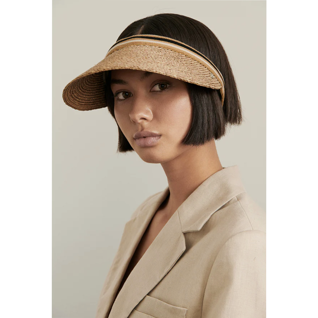 The Bianca is one of our most popular visors, coveted for its easy wear and comfortable fit. Bianca's 10.5cm peak shows off the artisanal handcrafted raffia braid, offering protection from the sun whilst adding that sports-luxe style to any outfit. Now available in both our iconic colours and limited edition seasonal colours, paired with our signature stripe band or logo elastic band.