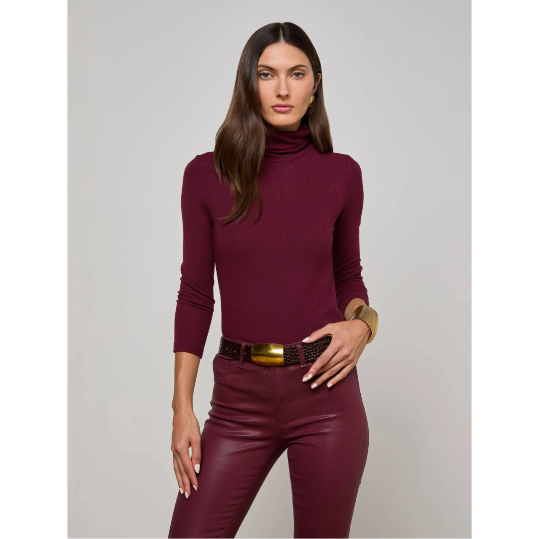 Our essential turtleneck top crafted from our super soft stretch modal and finished with three-quarter length sleeves. Perfect for layering or wearing alone. Now in dark port.
