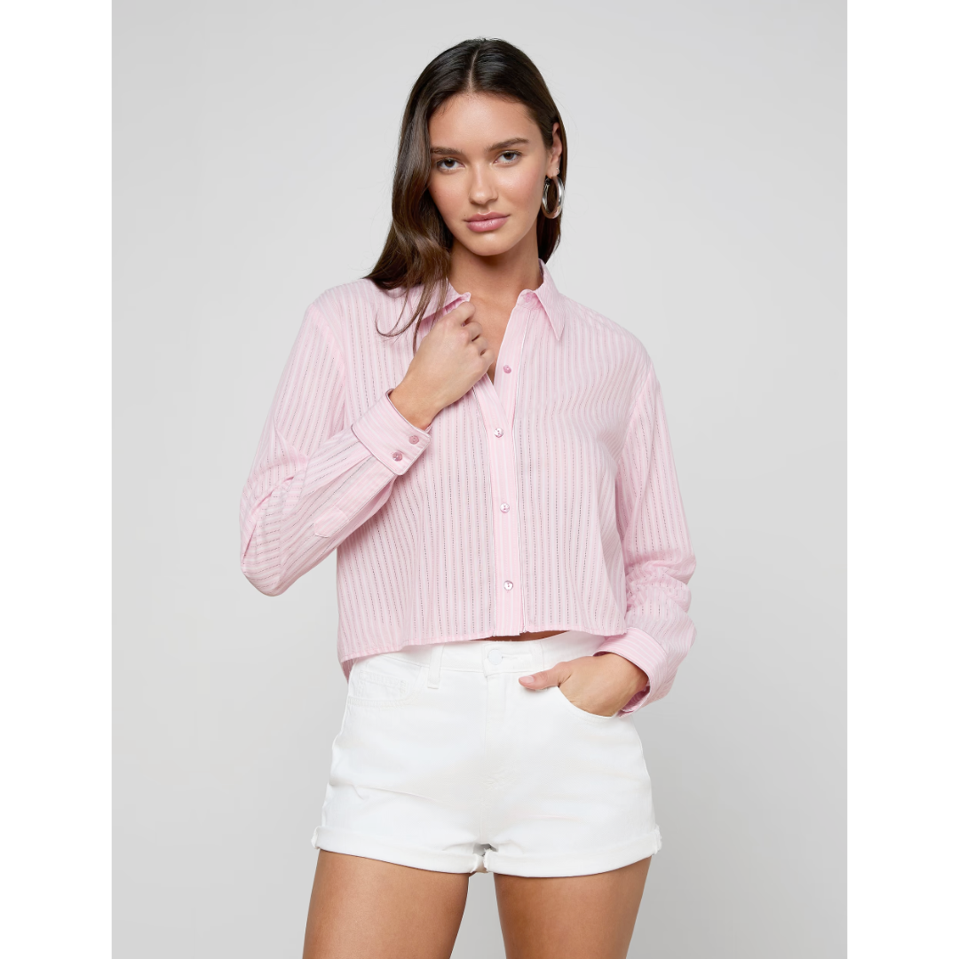Meet the iconic long-sleeve silk button-down that belongs in every wardrobe. This L'AGENCE bestseller is now back in a playful pink postcard print.