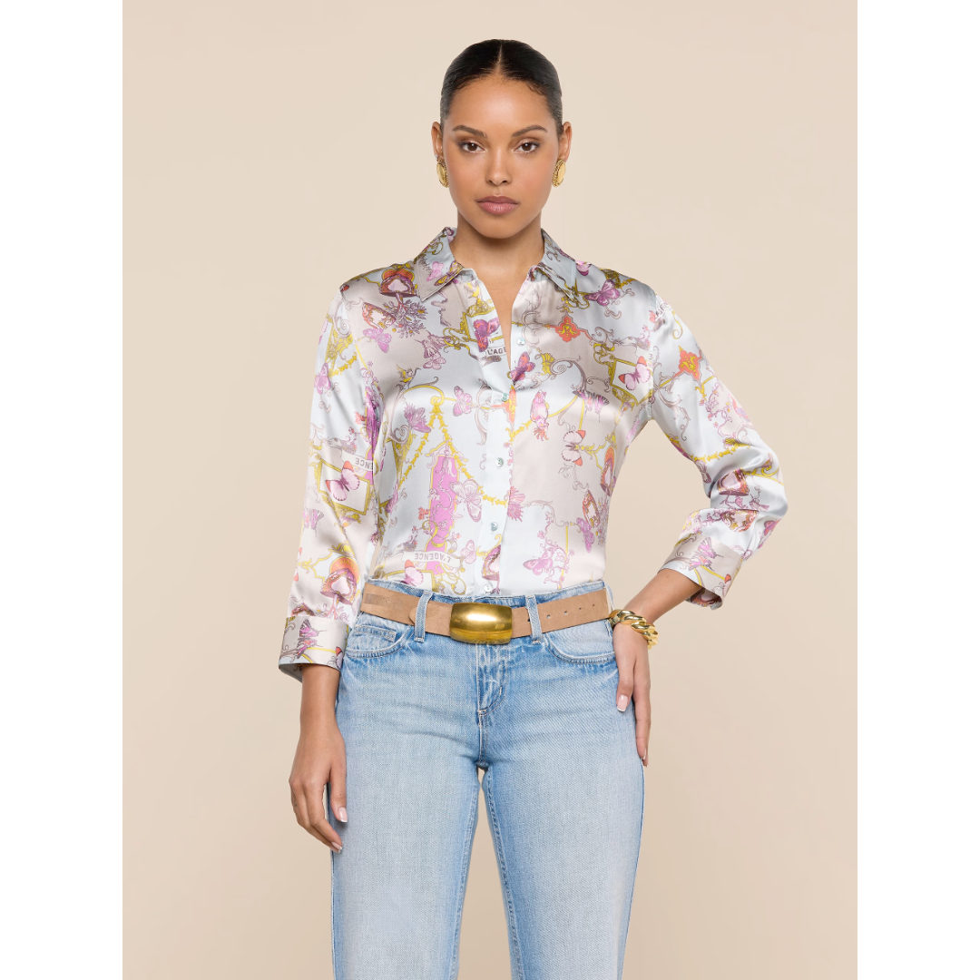 The iconic silk button-down that belongs in every wardrobe. This all-time bestseller is constructed with three-quarter length sleeves designed to perfectly showcase your jewelry—no sleeve rolling required. Our Dani blouse is back in a baroque toile print.