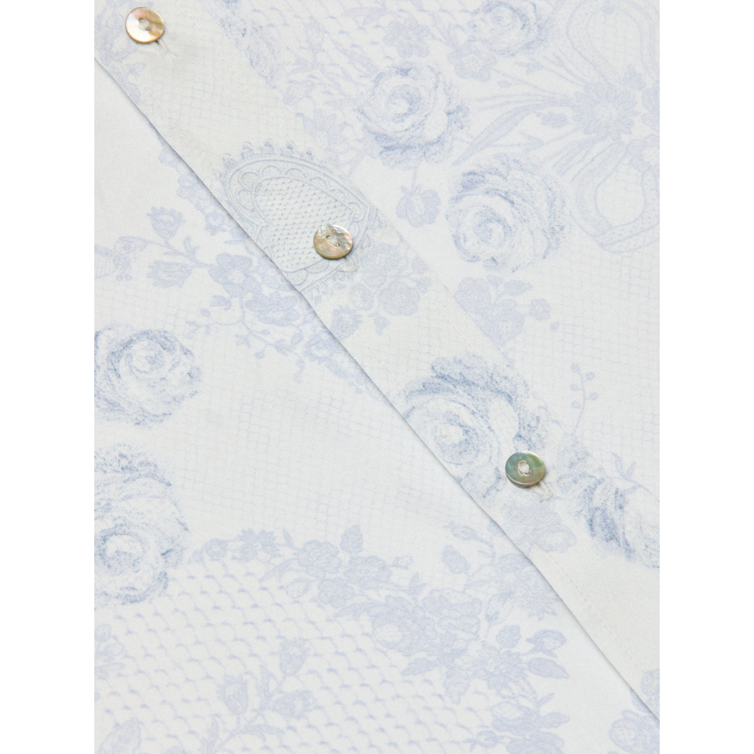 The iconic silk button-down that belongs in every wardrobe. This all-time bestseller is constructed with three-quarter length sleeves designed to perfectly showcase your jewelry—no sleeve rolling required. Our signature Dani blouse is back in an ivory and blue lace print.