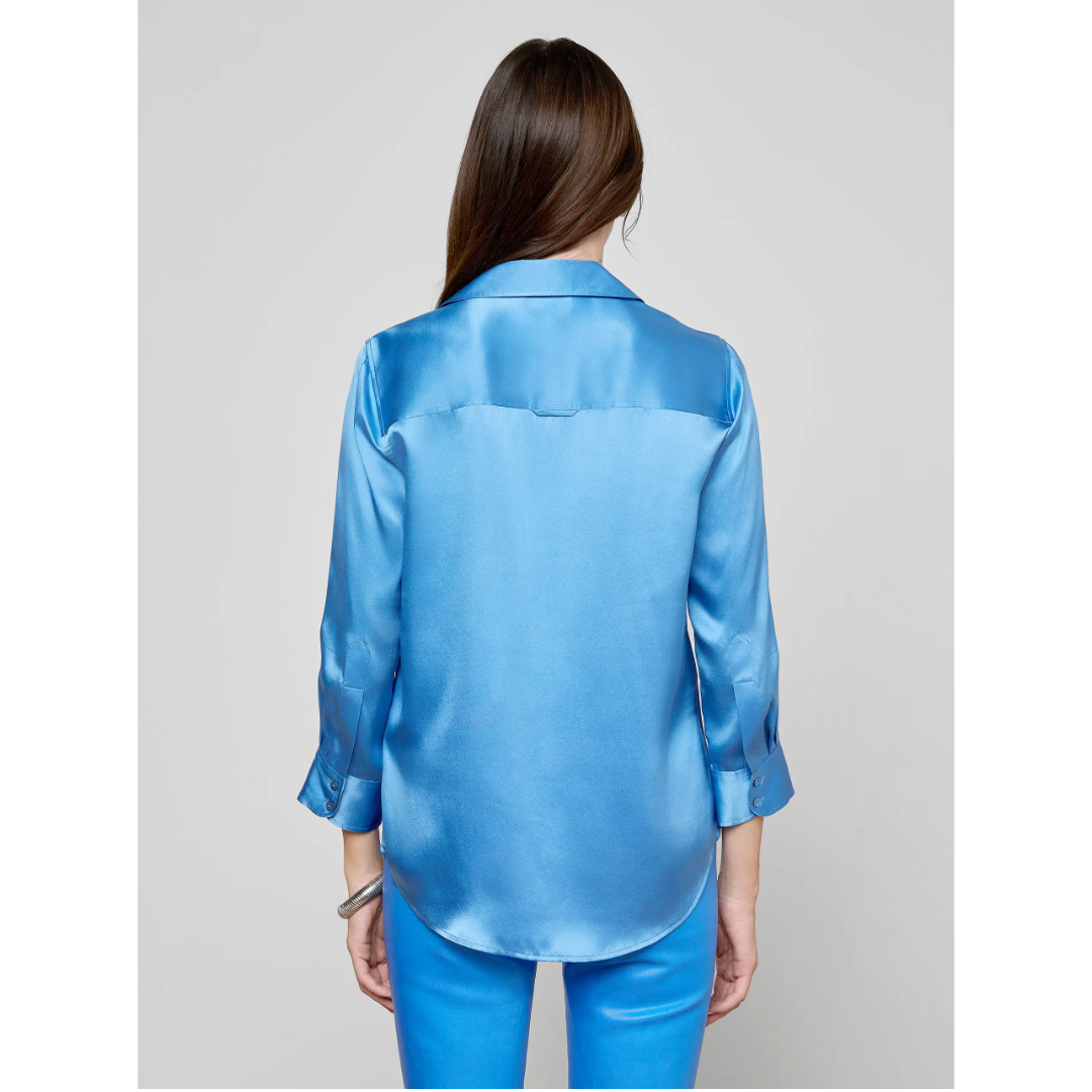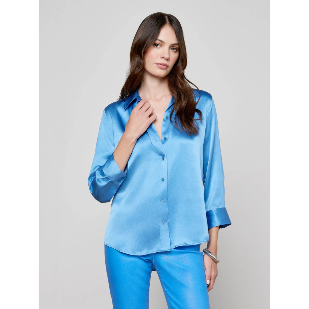 The iconic silk button-down that belongs in every wardrobe. This all-time bestseller is constructed with three-quarter length sleeves designed to perfectly showcase your jewelry—no sleeve rolling required. Our signature Dani blouse is back in a bright regatta blue.