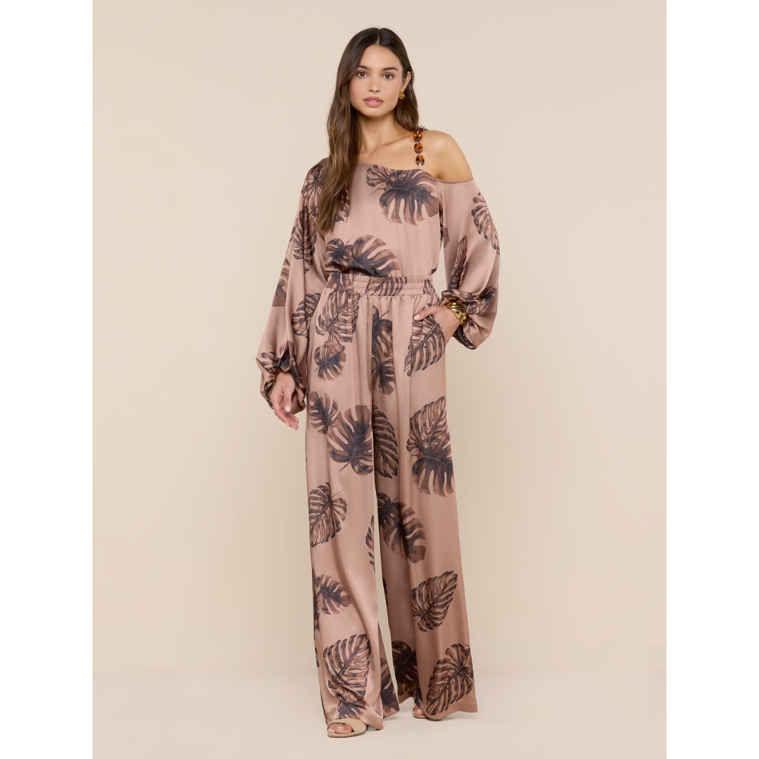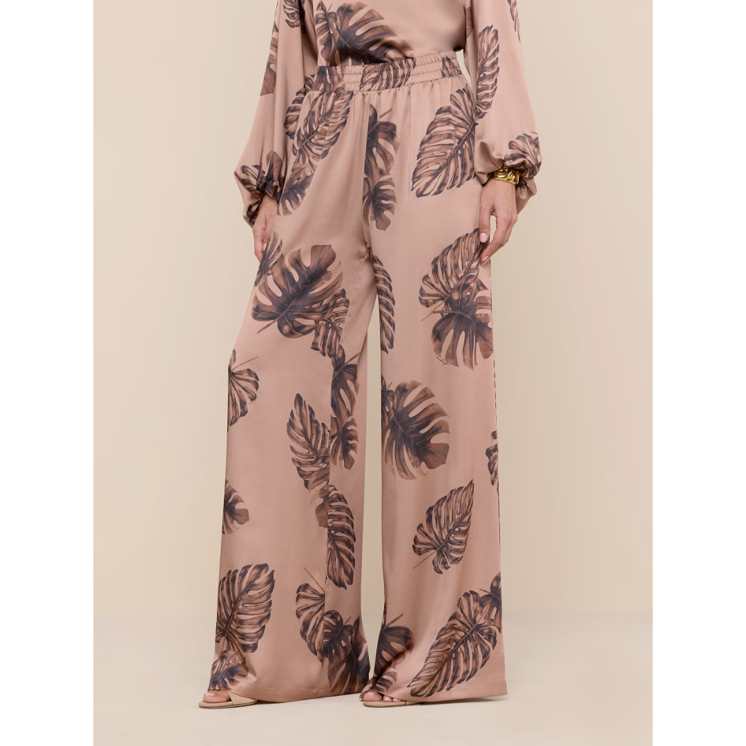 Defined by elegant drape and flow, our timeless ultra-wide Lillian pant is back in a palm leaf print.
