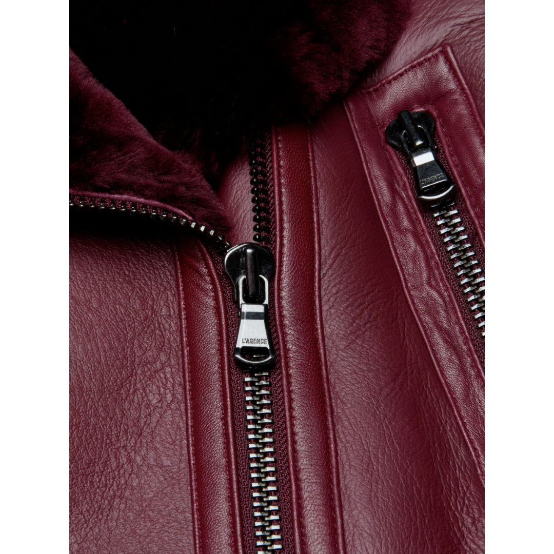 The ultimate fall-to-winter layer. Genuine shearling lines glossy leather for functional warmth while a cool, boxy fit keeps the Pike timeless yet modern. Now in a rich shade of wine.