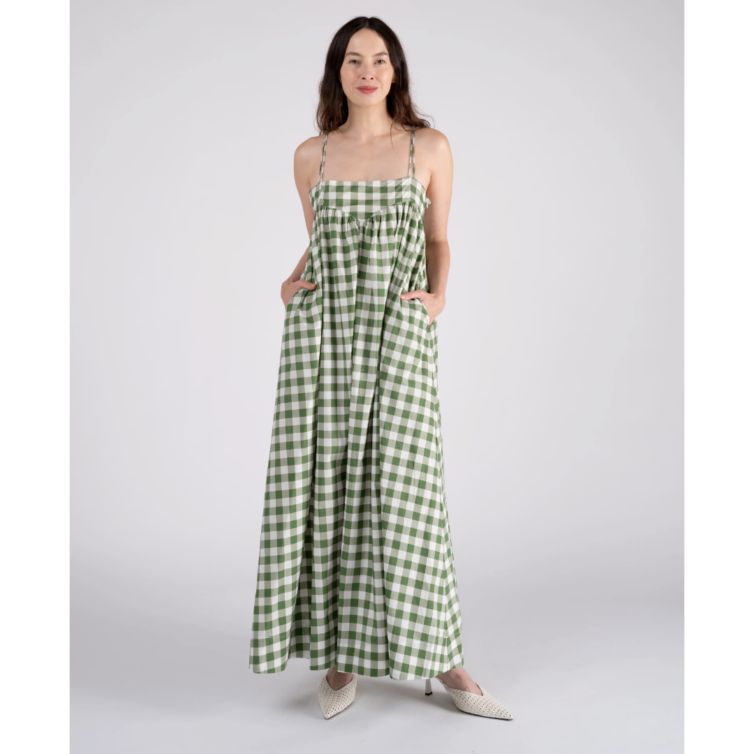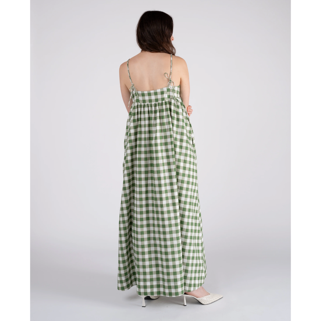 Savor the delights of springtime picnics and lingering summer evenings in the Ruth dress. Crafted in cotton gingham with spaghetti straps and a bias-cut hem band, this dress effortlessly balances style with ease.