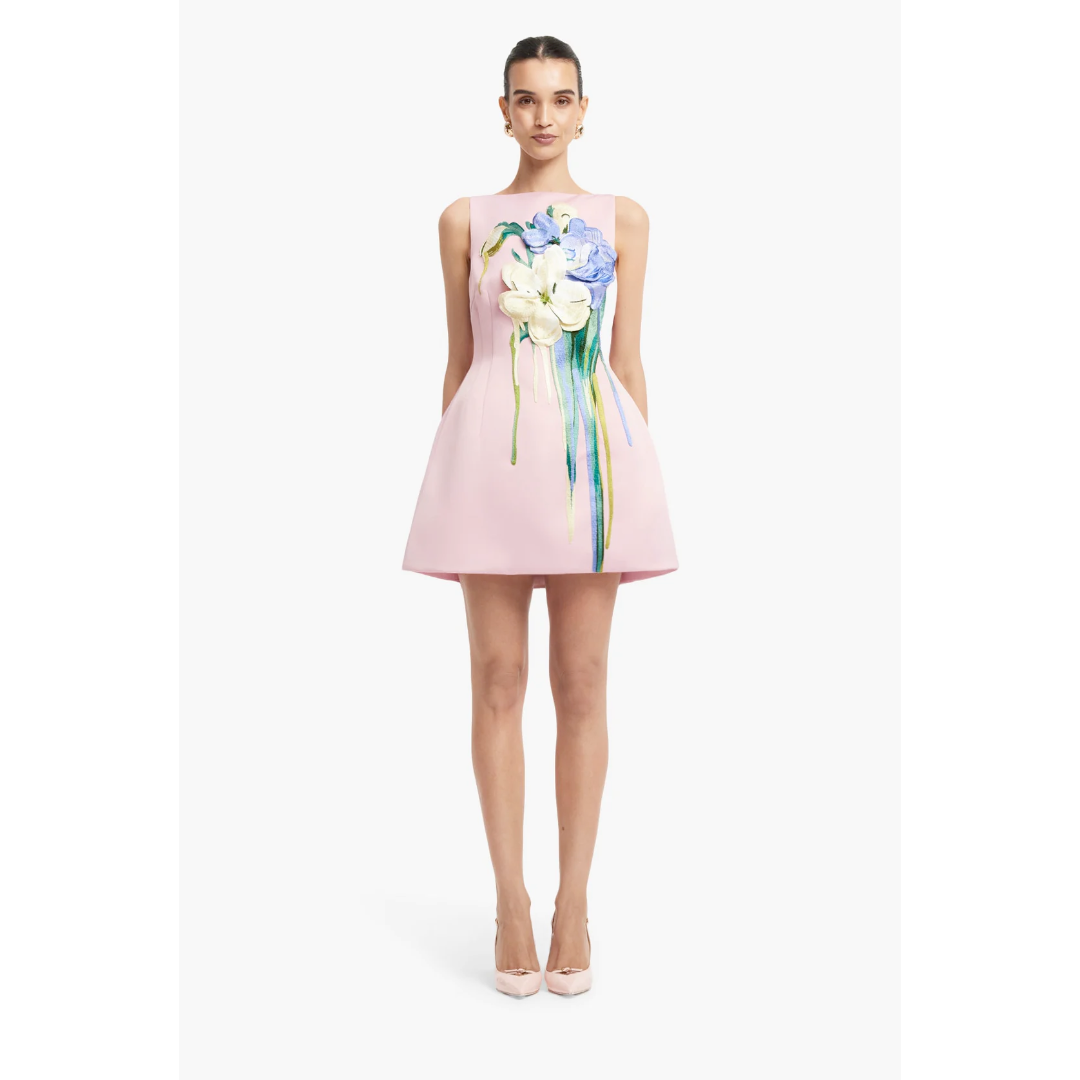 White and lilac bundles feature whimsical dripping stems over a soft blush canvas. This print is a sweet, dream-like escape for modern romantics.