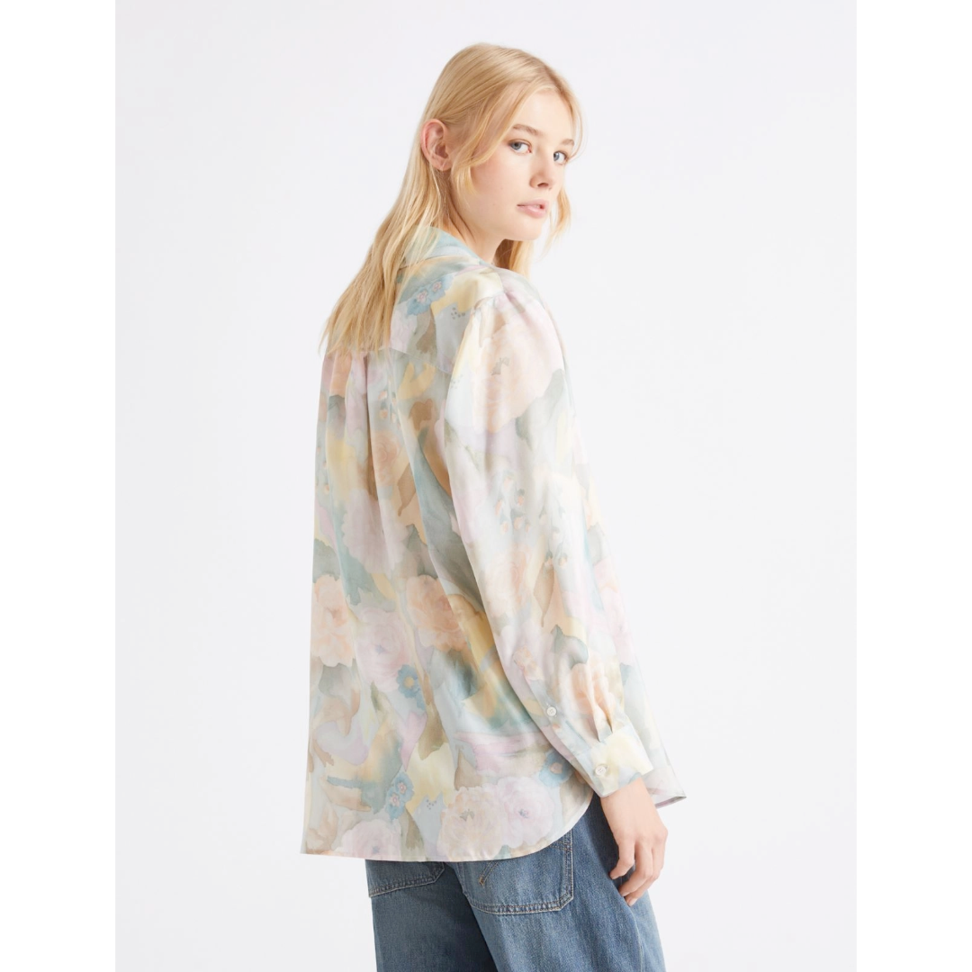 This pure silk Habotai shirt is decorated with a subtle nuanced pastel print. The light and elegant model can be paired with tailored trousers, skirts or jeans to play with ultra-versatile combinations.