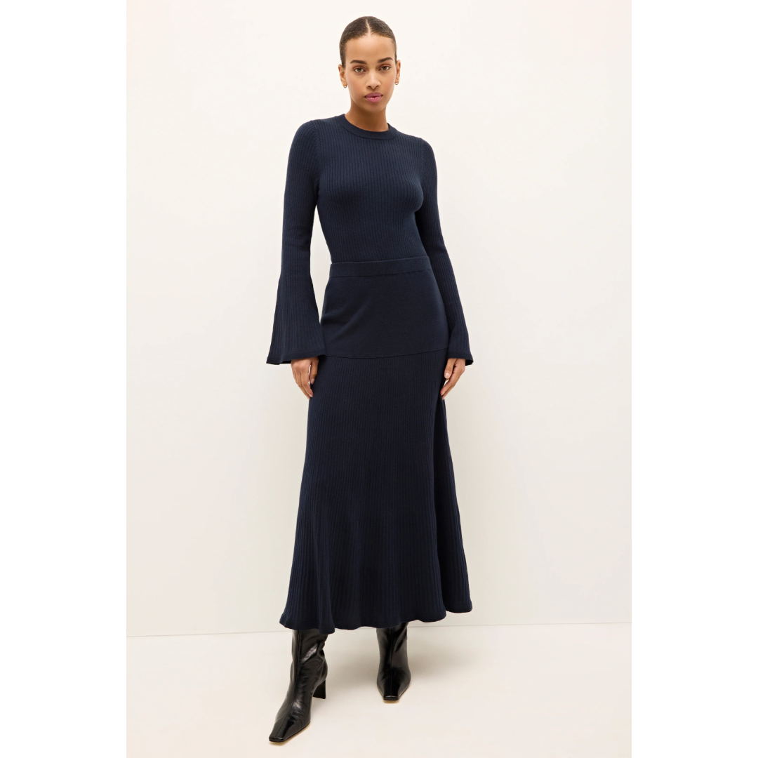 -Slip-on silhouette-Elastic waist sits at natural waist-Drop waist rib yoke-Fitted at waist and hips-60% cotton / 30% nylon / 10% merino wool-Unlined-Care Instructions: hand wash cold with mild detergent, do not bleach, lay flat to dry, cool iron or dry clean in mild process