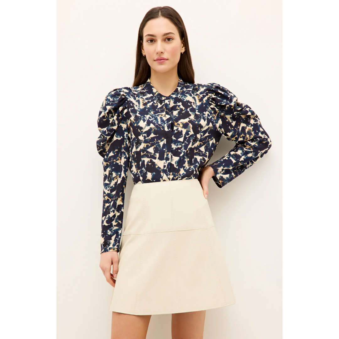 -Button front placket-Gathered cowl sleeve with fitted forearm-Relaxed fit through body-65% rayon / 35% silk-Unlined-Care Instructions: hand wash with gentle detergent and hang dry or dry clean