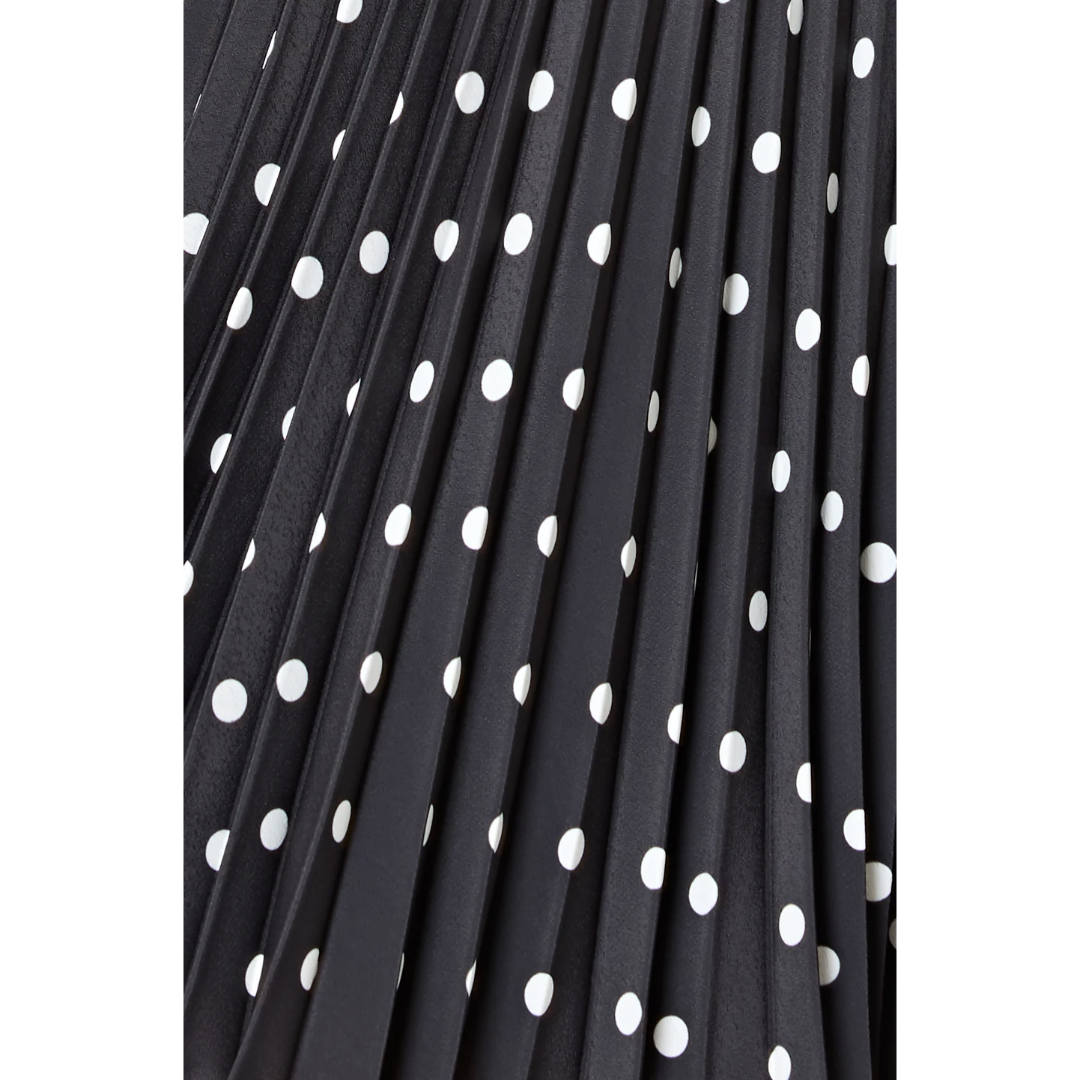 Minimal and versatile, the Haddy dress is just as suited for work as it is for cocktails. It has an extended bodice that hits the waistline in a flattering V-shape, giving way to a signature pleated chiffon mini skirt. This best selling style is offered in black with an attached pleated skirt done in a black and white polka dot print.