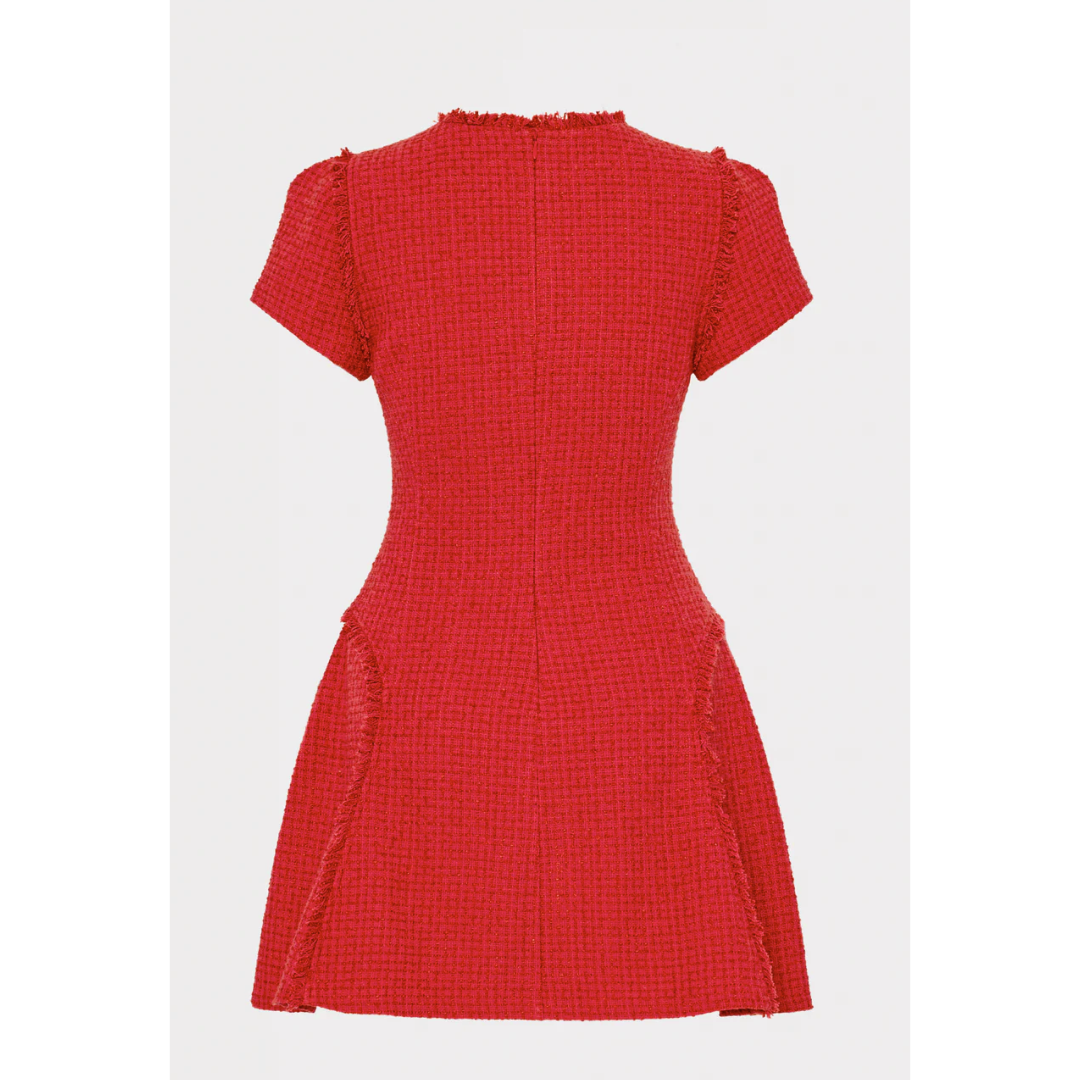 This effortless, classic style is cut from our luxurious bouclé fabric. It's designed with a fit-and-flare silhouette and is trimmed with fringe detail across the neckline and multiple seams throughout. Wear it to parties and events all season long, and keep it in your closet forever.