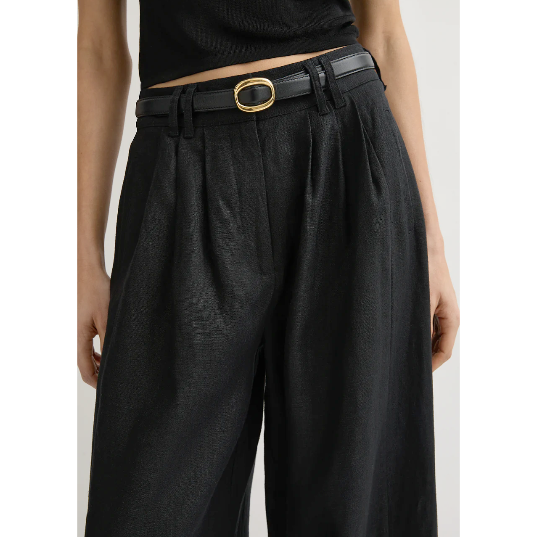 The Parker Trousers are cut from premium linen and are designed with a flattering, high-rise waist. They feature roomy, wide legs and front pleats to create volume.