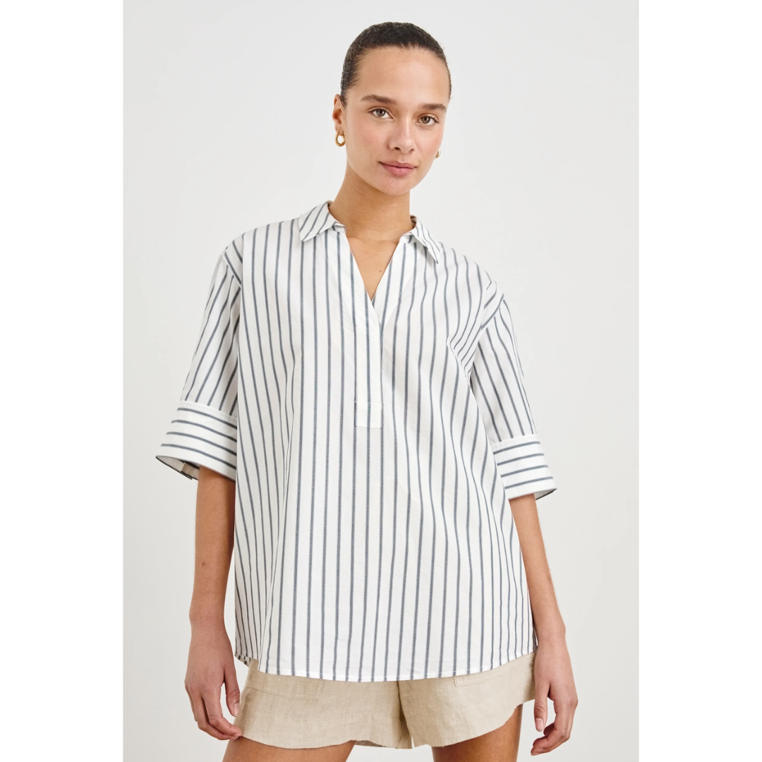 Crafted from airy cotton poplin, the Juda is a shirt specifically designed to keep you comfortable. With a roomy fit, v-neckline and collar, this is an essential lightweight pullover.