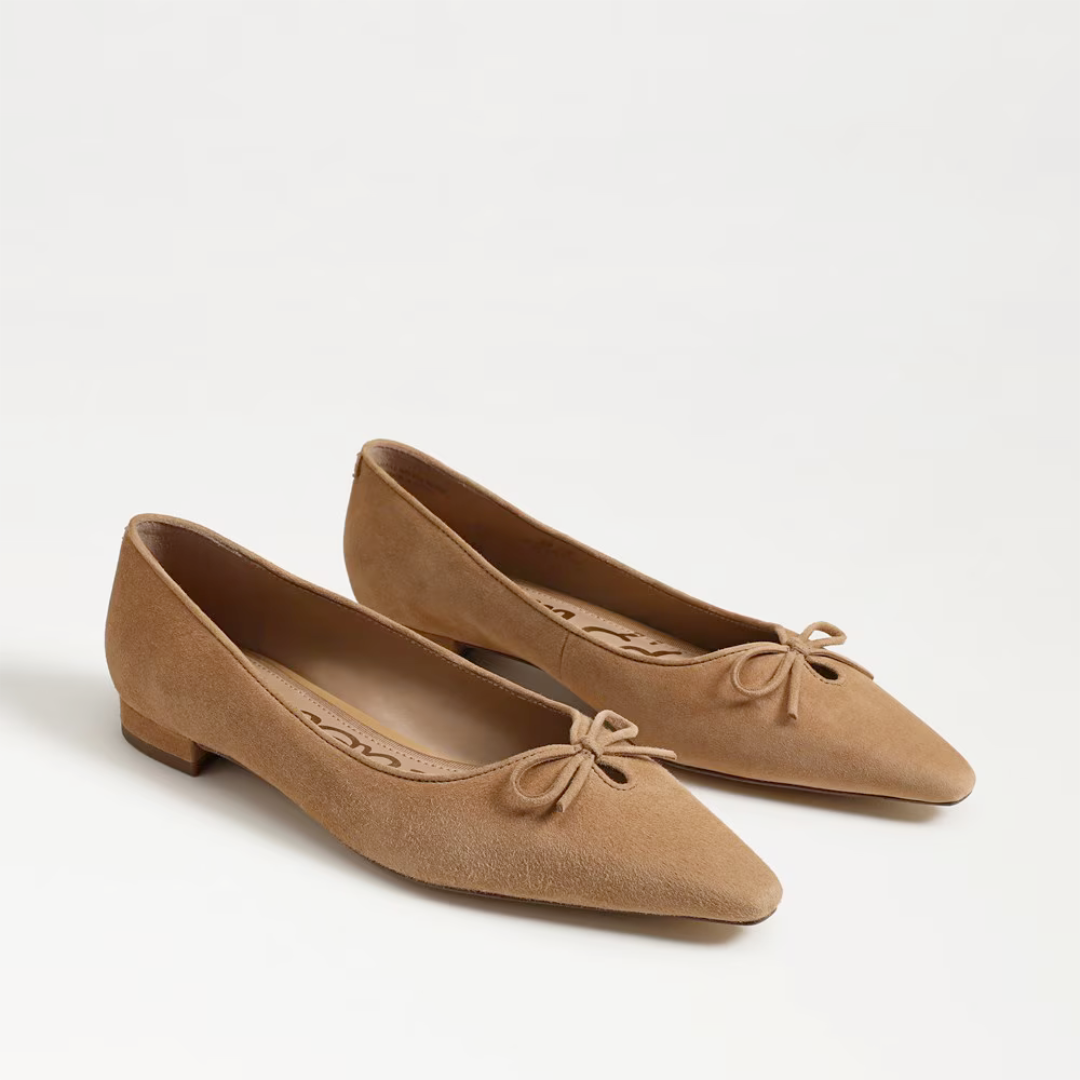 Classic meets chic in the Esmira Pointed Toe Ballet Flat, designed with a sharp silhouette for a polished, modern twist on timeless femininity. This refined ballet flat brings instant sophistication to every look, from desk to dinner.