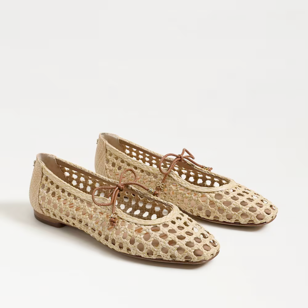 Effortlessly chic, the Marcie flat combines a breathable woven design with feminine bow detailing. Perfect for a warm weather look, the Marcie pairs well with a classic mini dress, giving you a classic, elegant look.