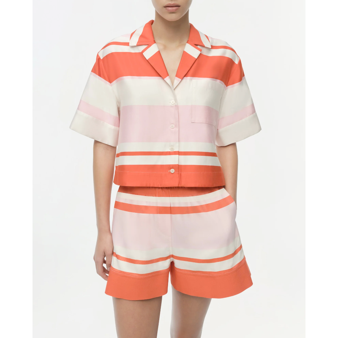 The Karleigh Drawstring Shorts in Tulip Stripe. These yard-dyed, striped shorts feature an adjustable drawstring closure allowing for a relaxed fit. Pair with the Bailee Camp Shirt in Tulip Stripe for a matching set.
