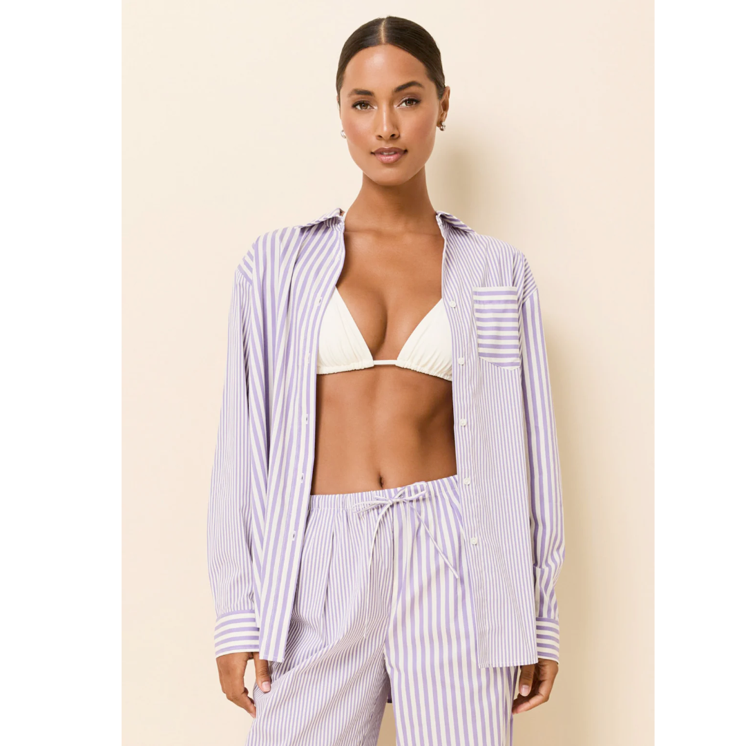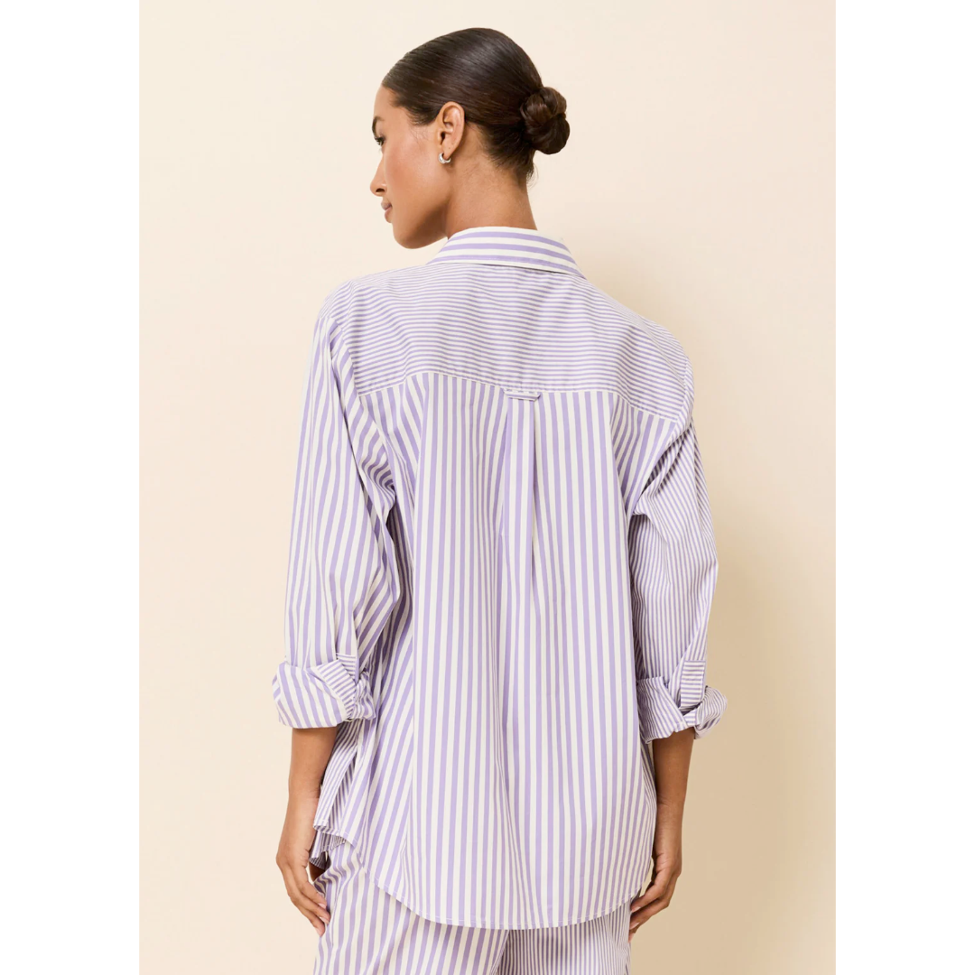 This classic button-down shirt is a timeless summer essential. Featuring a relaxed fit, a single chest pocket, and elegant mother-of-pearl buttons, it’s finished with a washed effect for effortless, lived-in charm. The design showcases playful stripe size variation for a fresh take on a classic pattern—delivering the perfect blend of heritage style and casual sophistication.