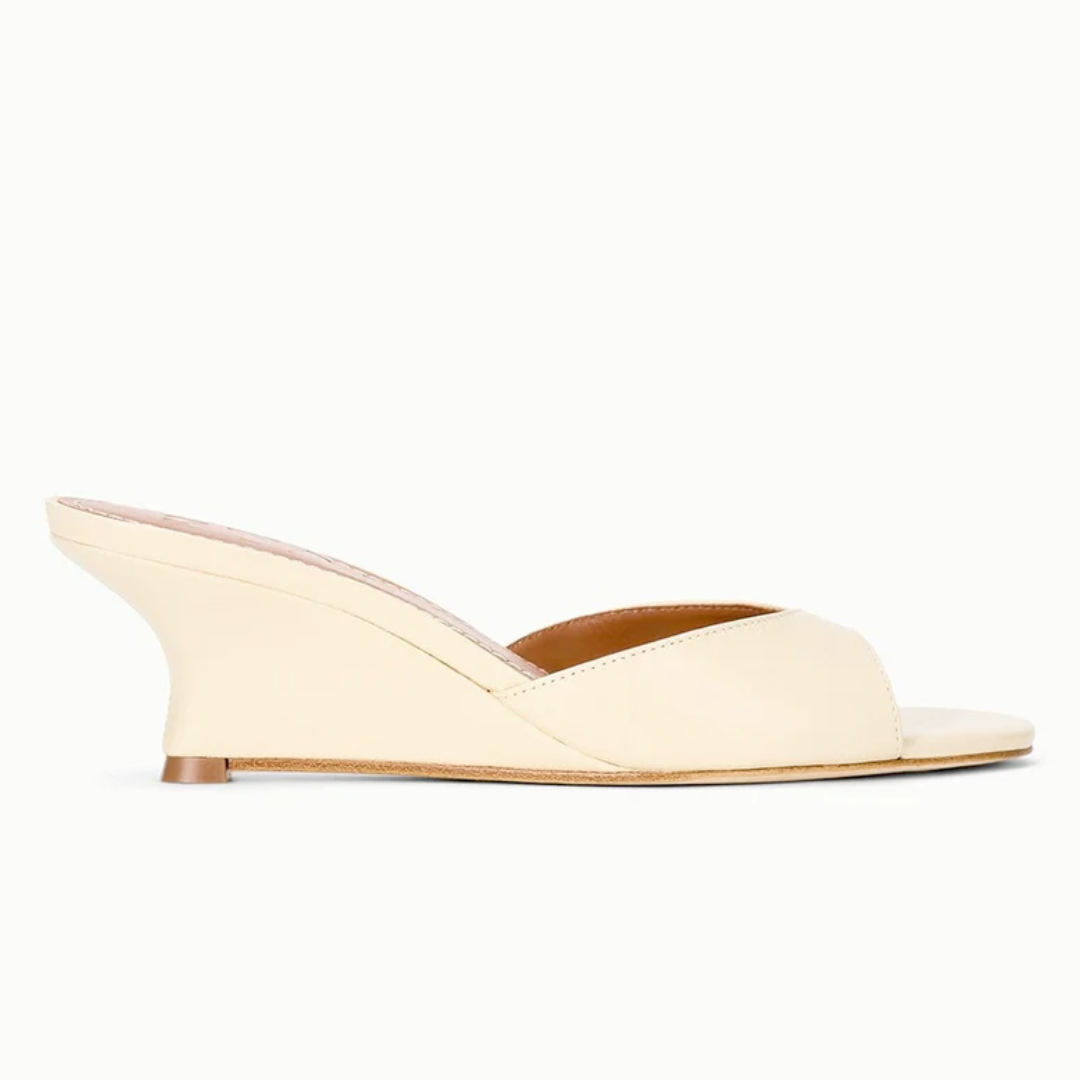 The Brigitte Wedge is an update to our best-selling Brigitte Mule. This versatile shoe is crafted with high-quality nappa leather for a luxurious feel.