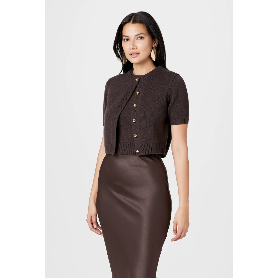 The Pippa is a short-sleeve, cropped crewneck cardigan, knit from a soft cashmere blend. Slim-fitting and refined, it’s the perfect balance of polish and ease. Style it buttoned up with high-rise denim or layered over a slip dress for a modern, feminine look.
