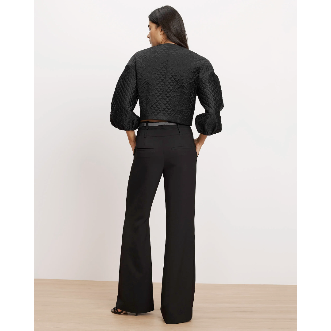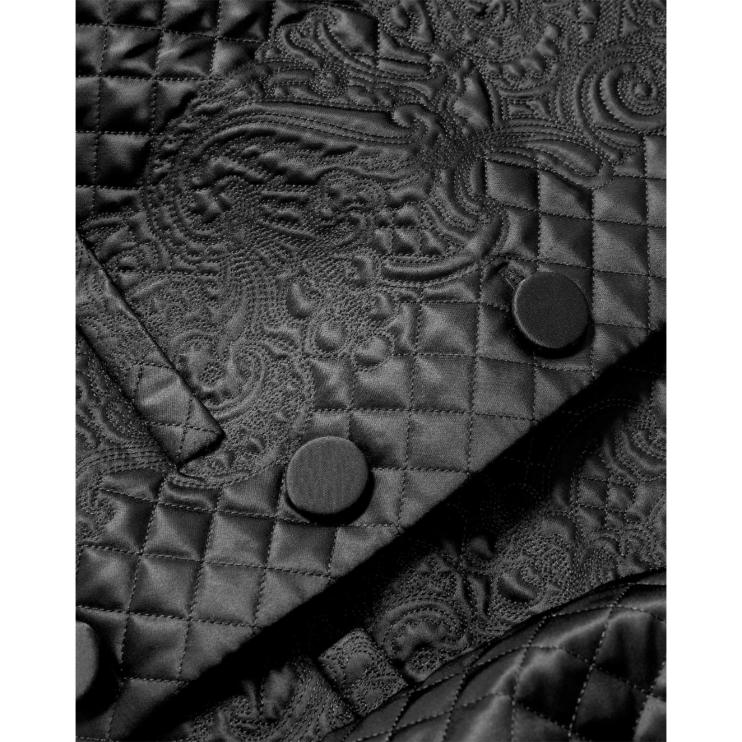 A jacket that makes an entrance. Crafted from smooth, subtly lustrous tailoring fabric, the Drake jacket is defined by intricate allover diamond-and-floral quilting. Voluminous balloon sleeves balance its cropped, collarless silhouette for dramatic effect. Front welt pockets and self-covered buttons complete the look. Style with a slim, black pant for an elegant, modern finish.
