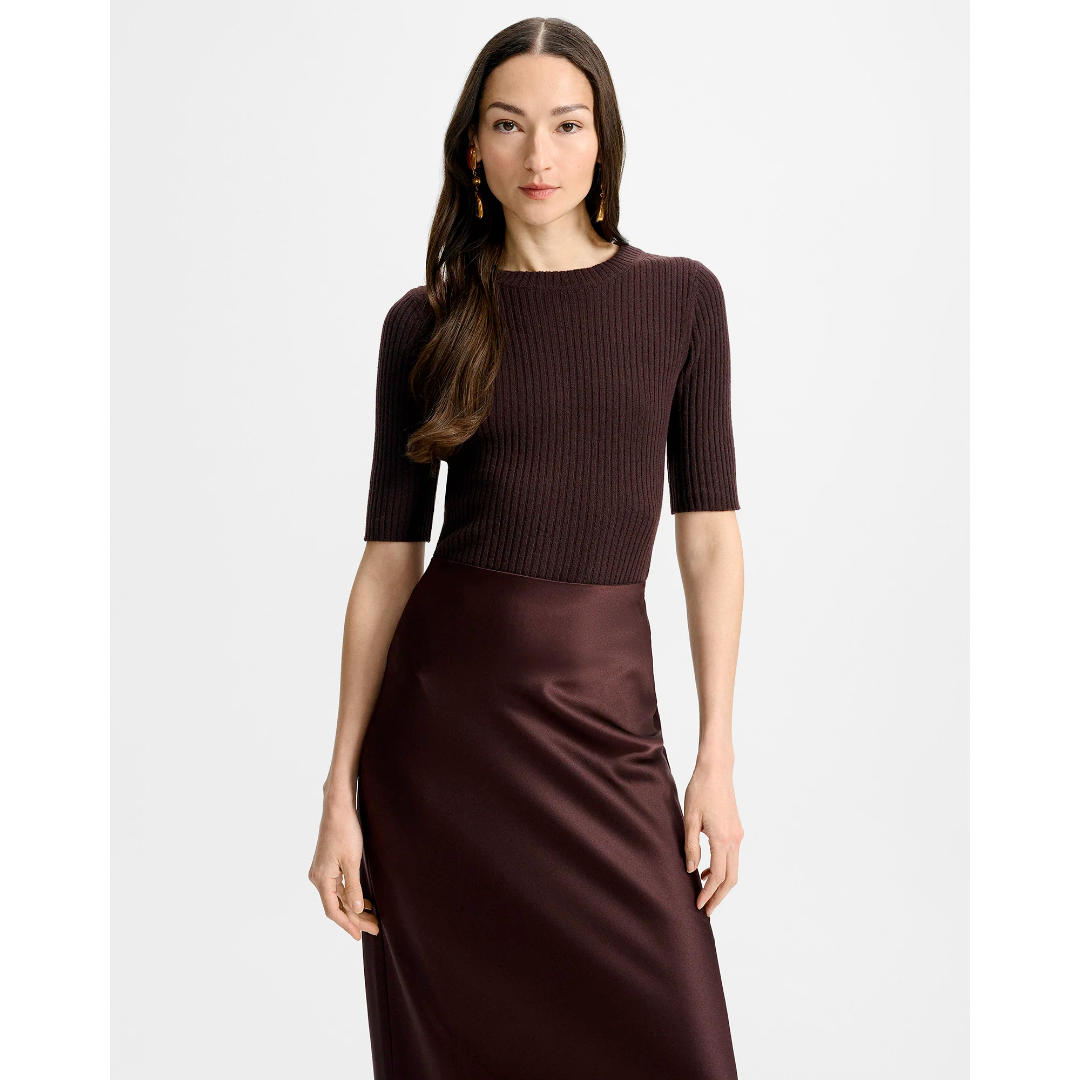 A wardrobe essential you’ll rely on year-round. Spun from premium cashmere with an exceptionally soft hand feel, the Emil is a classic maroon pullover designed to stand alone or layer with ease. Finished with all-over ribbing, half sleeves, and a clean crew neckline, it’s a minimalist classic with endless versatility. Pair with pants or skirts alike for effortless styling.