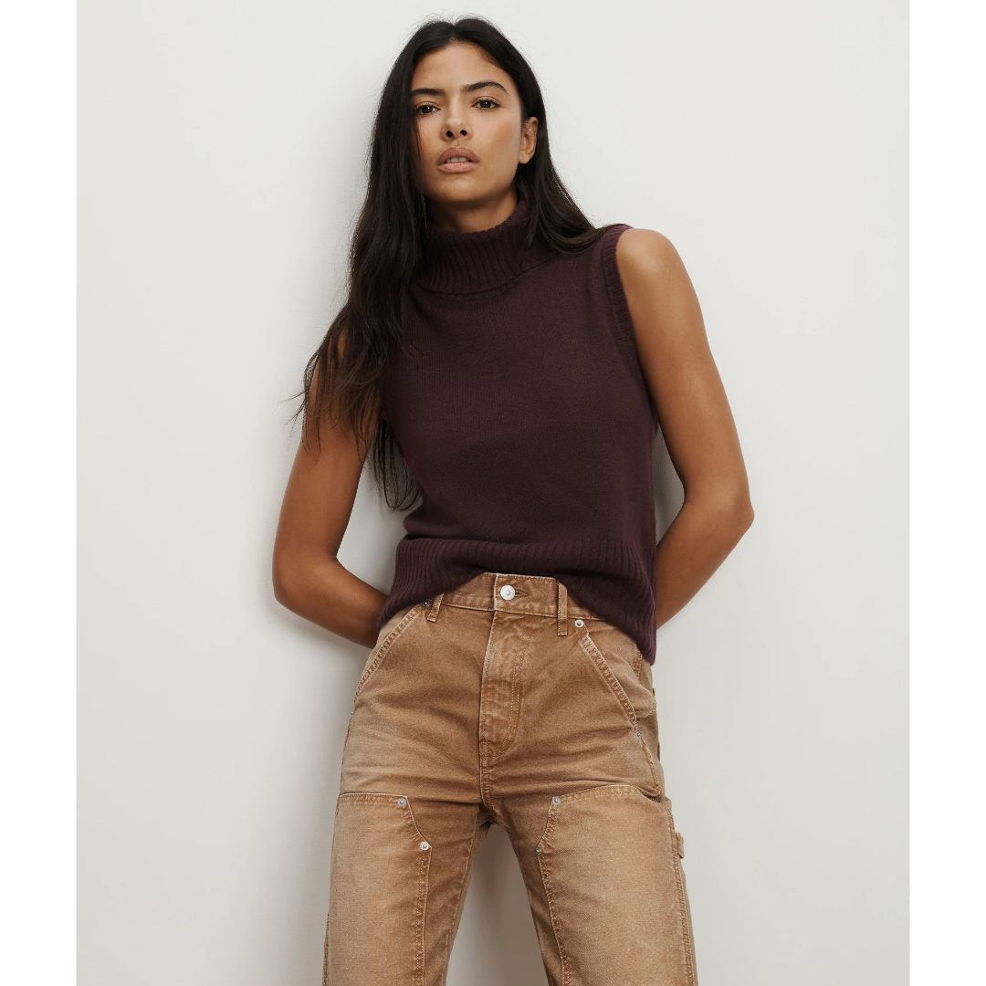 Essential to any wardrobe, the Mazzy is the ultimate luxury staple. Crafted from plush, finely knit cashmere, this sleeveless top has an exceptionally soft hand feel. A ribbed turtleneck and trimmings give it a preppy polish, while its relaxed shape is forgiving. Whether layered under a jacket, over a long-sleeve T-shirt, or worn on its own, it’s a go-to sweater with endless styling options.